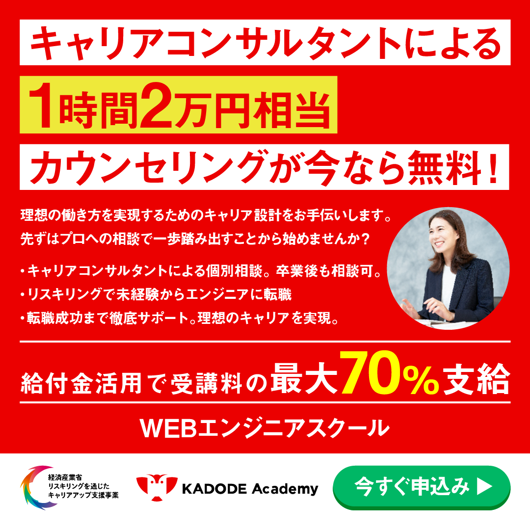 ☆未経験でも働きながらIT業界を目指せる【KADODE Academy (カドデアカデミー)】申込促進プロモーション